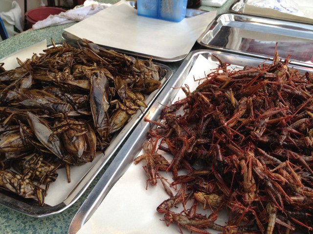 Adesso sono a Phuket, l’sola più grande e famosa, dove sono stato ancora una volta sommerso dai turisti. Milioni di ombrelloni, “me-love-you-long-time”, e altoparlanti che sparano musica a tutto volume promuovendo combattimenti di boxe thailandese. Ma stavolta mi sono preso un motorino e mi sono spostato verso l’entroterra. E, finalmente, mi sono trovato in Thailandia. Quella vera. Solo villaggetti, mercatini, prezzi ridicoli, nessuno parla inglese… evvai! Finalmente sono solo! Scorpacciata di insetti fritti, conversazioni stentate, templi… insomma, le solite cose!