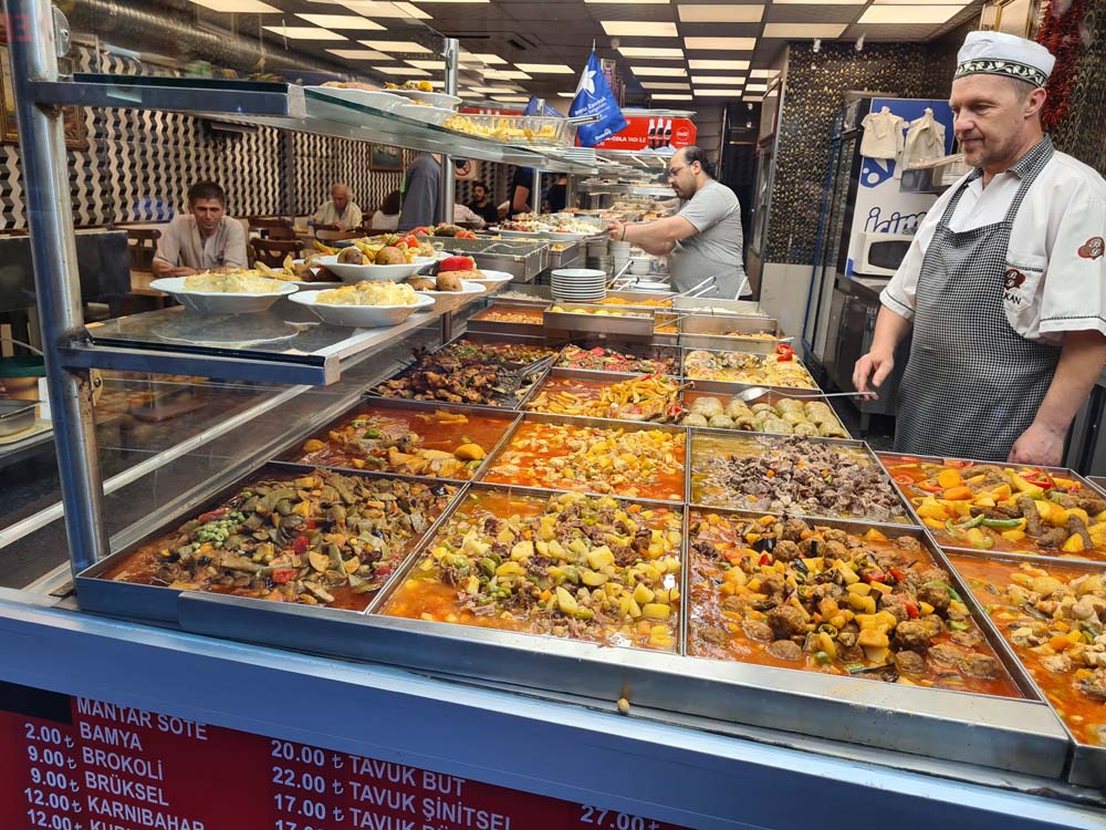 Queste sono solo alcune delle robe che abbiamo avuto modo di provare, visto che naturalmente scrivere tutto è impossibile, anche perché per farlo dovrei SAPERE cosa stavo ingurgitando… e molte volte toccava indicare cibi a caso, come ad esempio nelle lokantasi, nelle quali è possibile comporre piatti a proprio piacimento scegliendo tra zuppe, carne, riso, verdure eccetera.