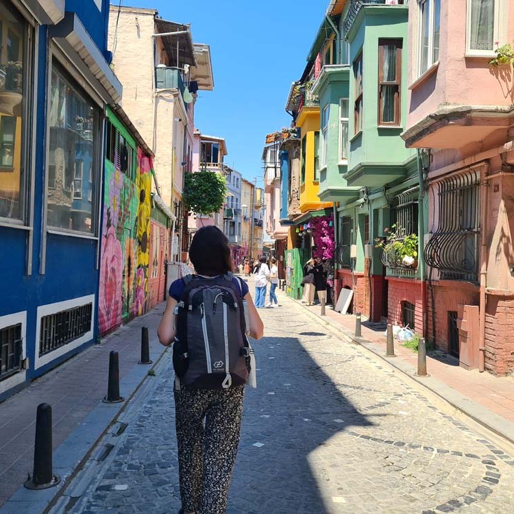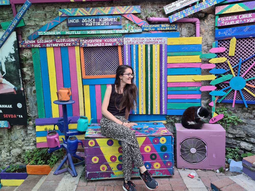Ad Istanbul abbiamo alloggiato metà del tempo in un tourist-ghetto antico (caratterizzato da palazzi storici), e l’altra metà in un tourist-ghetto hipster (contraddistinto da strade colorate e bar bobo-chic). Quest’ultimo è uno sfondo perfetto per i vari influencer che sembrano non stancarsi mai di occupare quanto più spazio possibile nel tentativo di incorniciare la propria persona tra ombrelli multicolore e auto d’epoca strategicamente posizionate. Abbiamo provato anche noi a sembrare frivoli e briosi ma non siamo abbastanza giovani e felici.