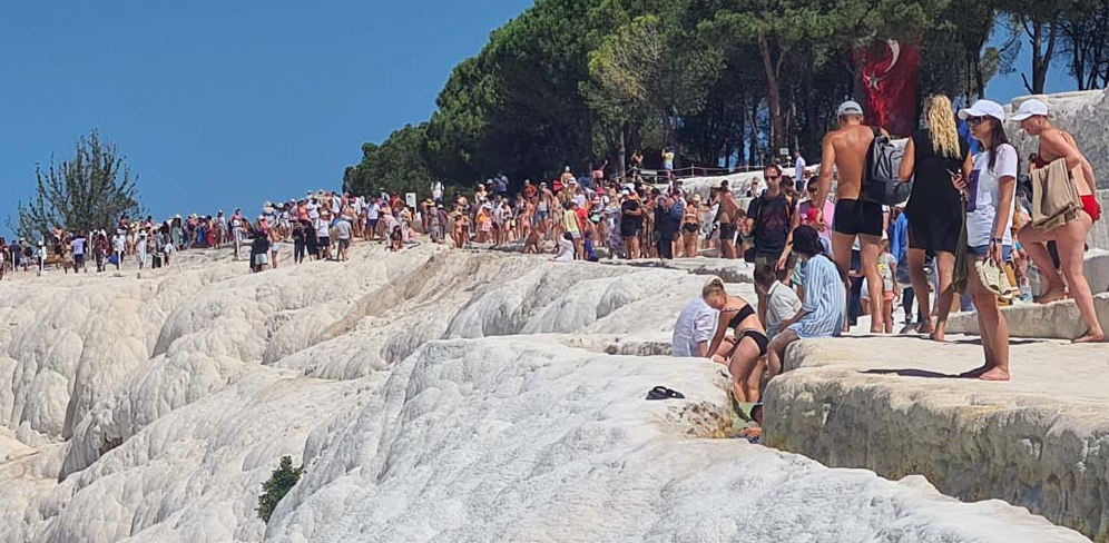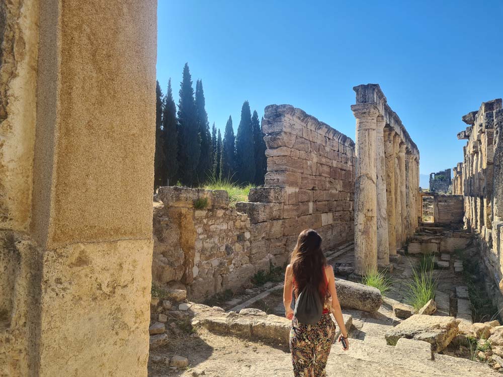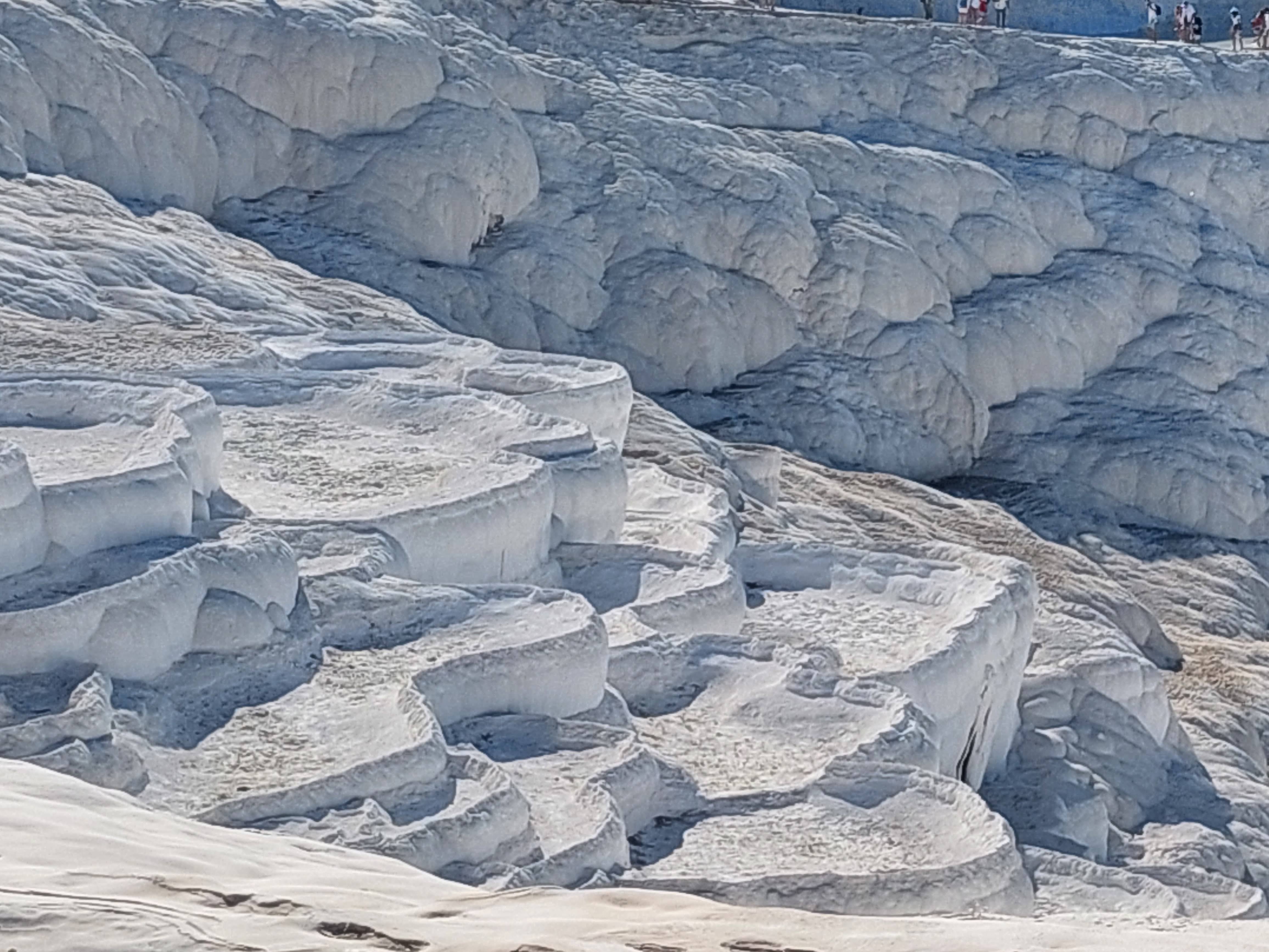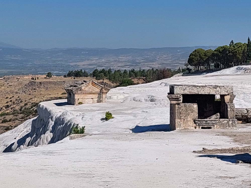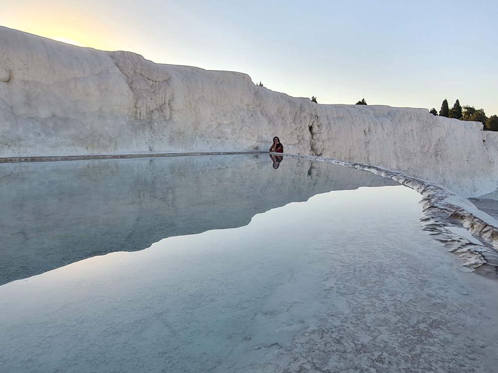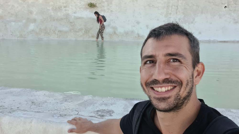 Abbiamo proseguito il nostro itinerario a Pamukkale, un posto bianchissimo nelle foto, un po’ meno dal vivo. Comunque a mezzogiorno il panorama brucia la retina. Questa attrazione turistica è l’esempio perfetto della meme “reality VS expectations”.