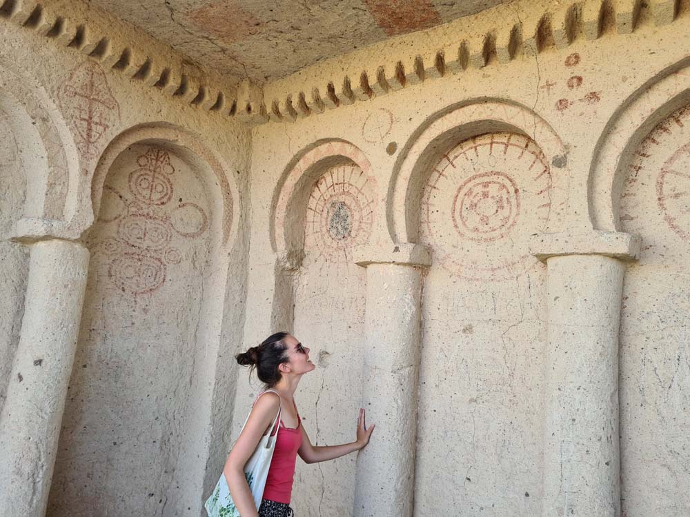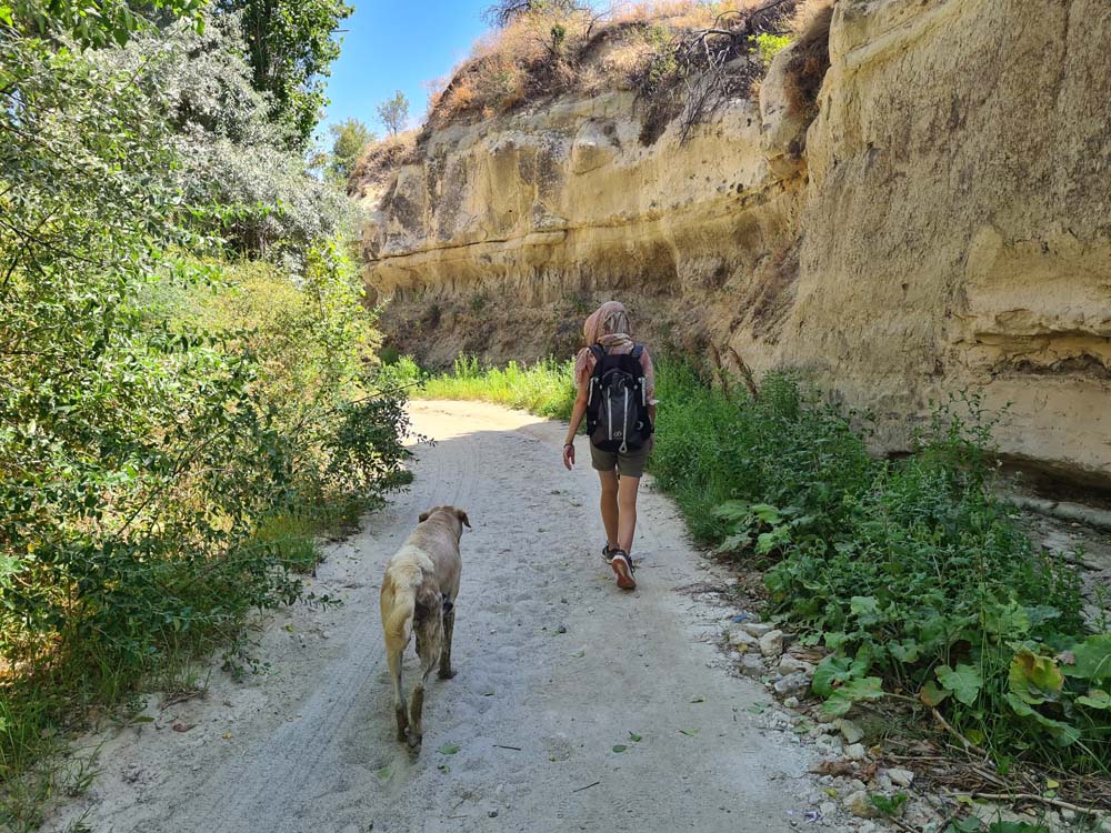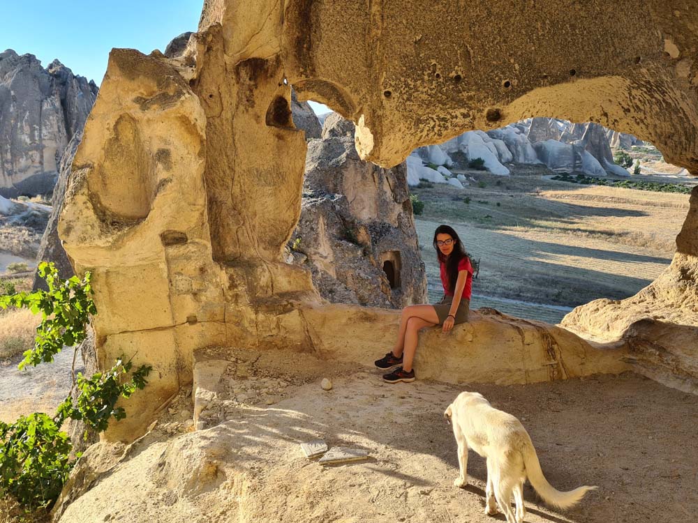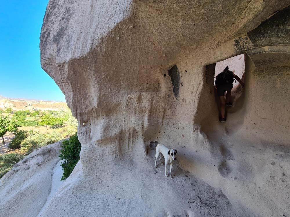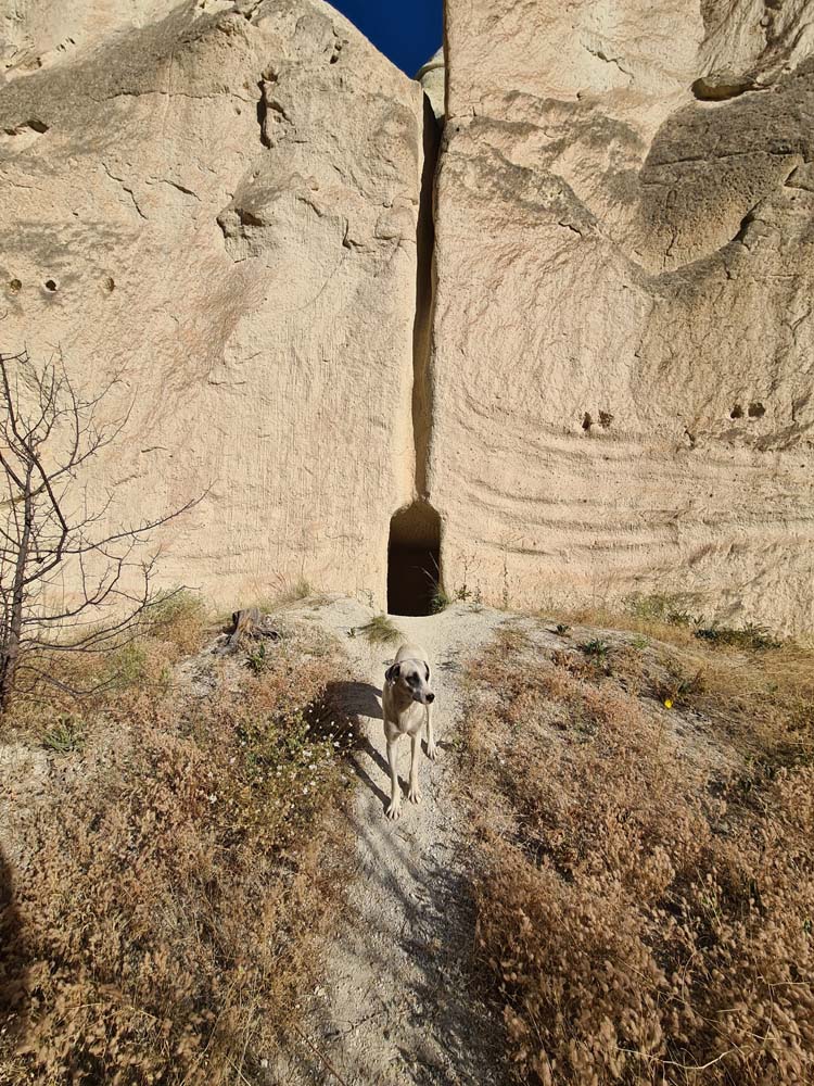 …che sono la cosa meno interessante da vedere, visto che la zona è disseminata di grotte scavate, qualcuna addirittura affrescata. Per vederle tocca fare trekking visto che sono sparse a caso e spesso nascoste dietro ai sassi. A quanto pare vagare per ore sotto il sole non è un’attività che va per la maggiore, visto che siamo stati da soli per tutto il tempo… se si escludono dei cani amichevoli che ci hanno accompagnato per decine di km senza motivo.